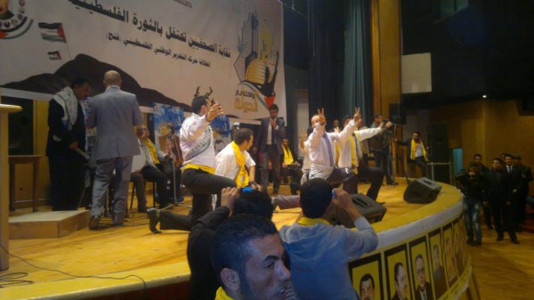 صامد للأنباء\نظمت حركة التحرير الوطني الفلسطيني فتح اقليم جمهورية مصر العربية وبالتعاون مع نقابة الصحفيين المصريين احتفالية مهيبة بذكرى انطلاقة الثورة الفلسطينية الـ 49 .