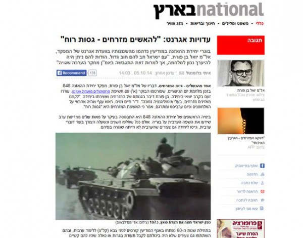 بمناسبة مرور 41 عاما على حرب السادس من أكتوبر عام 1973 التى انتصرت فيها القوات المسلحة المصرية على دولة الاحتلال الإسرائيلى وحررت شبه جزيرة سيناء وتكبدت فيها إسرائيل خسائر فادحة، سمح "أرشيف الجيش الإسرائيلى" بنشر وثيقة سرية حول إدلاء بعض الضباط الكبار بالجيش لشهادتهم حول الهزيمة أمام لجنة "أجرانات" التى شكلت عقب الحرب لتقصى حقائق الهزيمة.